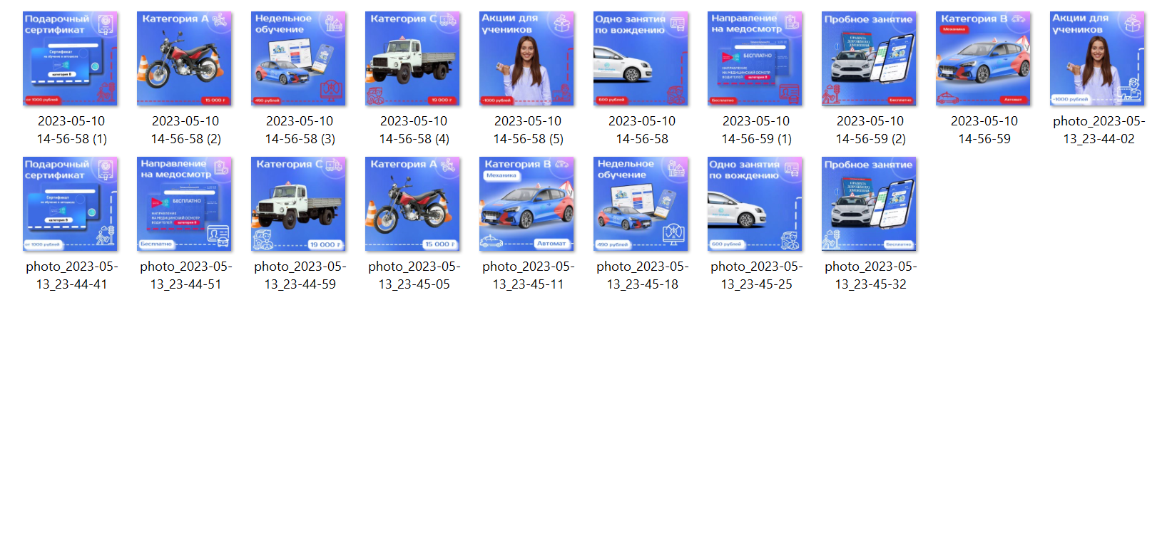 К программе передаются разные баннеры для рекламы и видеоролики, которые показывают, как проходит обучение по программе ПДД онлайн. Эти материалы улучшат визуал вашего предложения и помогут привлечь внимание потенциальных учеников на обучение.